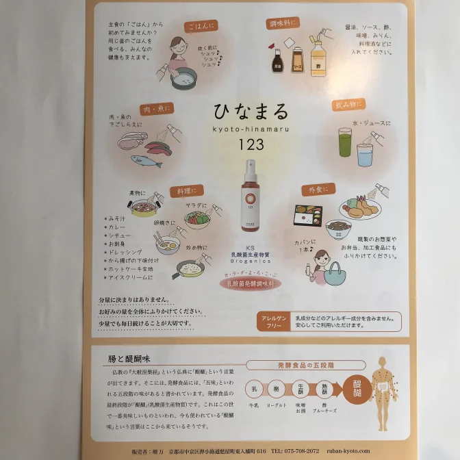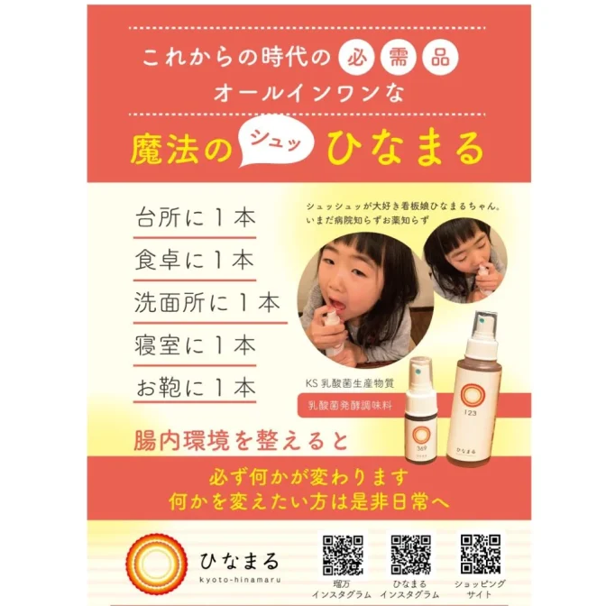 自社製品「躰のための高級発酵調味料”ひなまる乳酸菌生産物質”」を軸に、